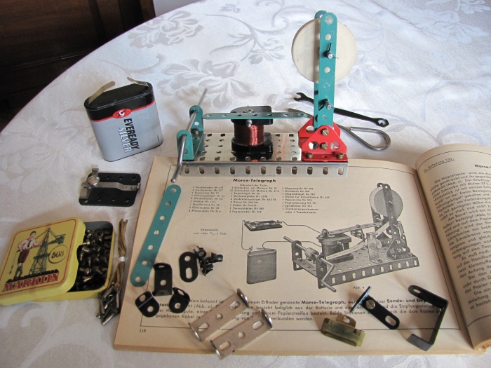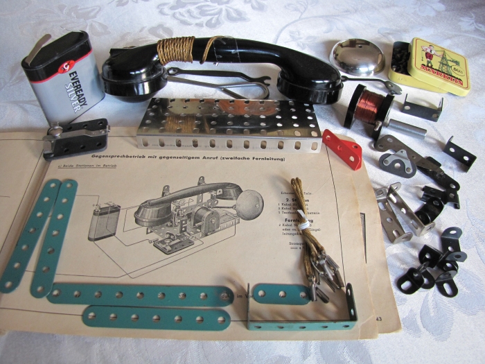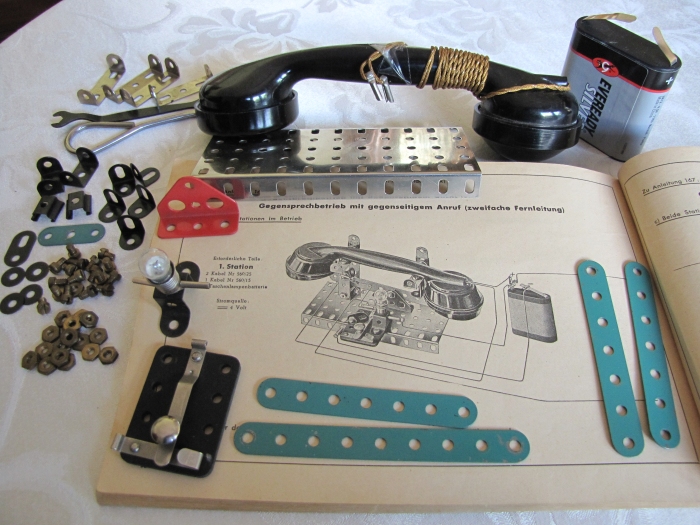 Märklin-Metallbaukästen angelehnt und enthält u.a. zwei Fernsprecher,