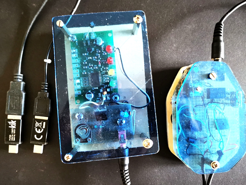 eine Zweikanal Fernbedienung gebastelt. Basis ist ein Maus-Chip. Den