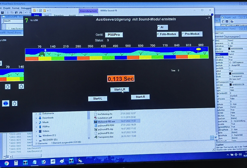 Bildschirm. Das Programm zeigt an, welche Zeit nach Auslösung vergangen