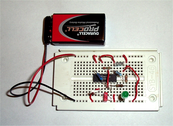 als Schwellwertschalter verwendet und der zweite als Blinker. Für