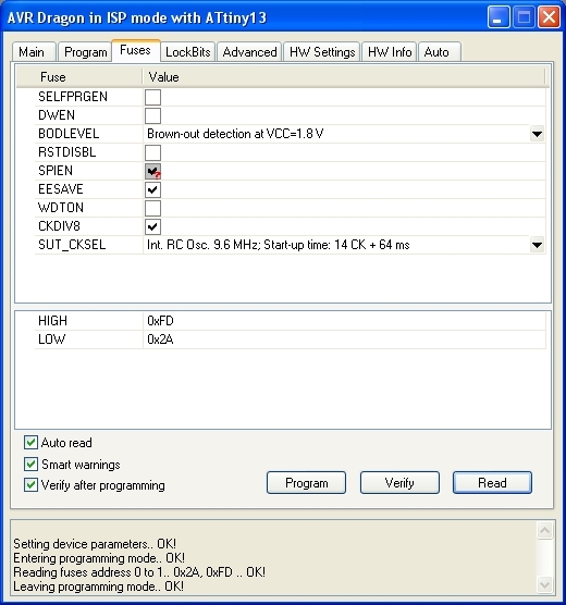 Außerdem sollte der Brown-Out Reset bei 1,8V aktiviert werden