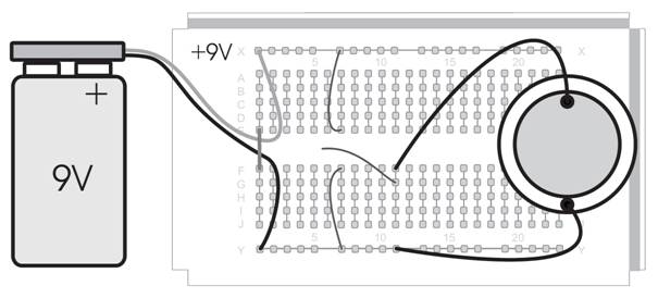 Ein zusätzlicher kurzer Draht wird als Zugentlastung eingebaut um die weichen Anschlussdrähte zu schonen. Der Batterieclip sollte immer verbunden bleiben, damit die Anschlüsse nicht übermäßig abnutzen. Zum Ausschalten trennen Sie die Batterie vom Clip.
