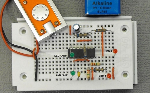 LED4 ) arbeitet, so wie im NE556-Kalender beschrieben. Ein Lichtblitz an LED „Aus“ hat zur Folge, dass die Spannung