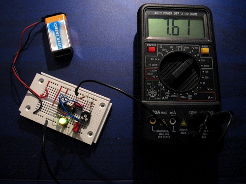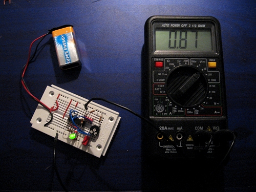 LED leuchtet auch schon bei der geringen Ausgangsspannung von 0,14