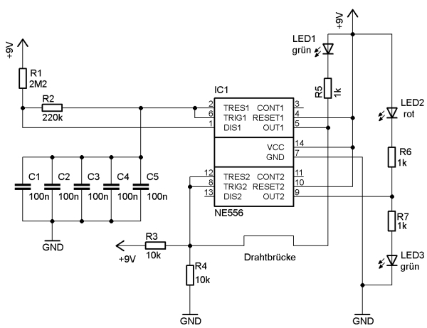 nun die im Schaltplan eingezeichnete Drahtbrücke herausgezogen
