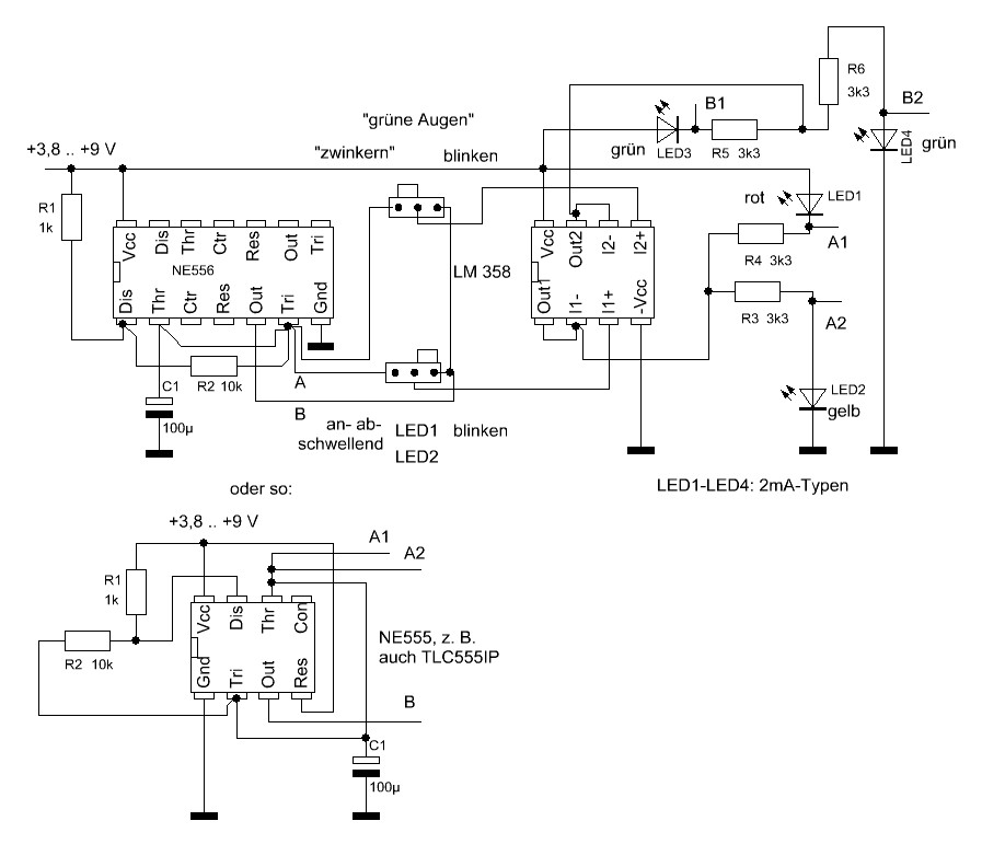 einem Baustein LM358 an. Beide Operationsverstärker sind als