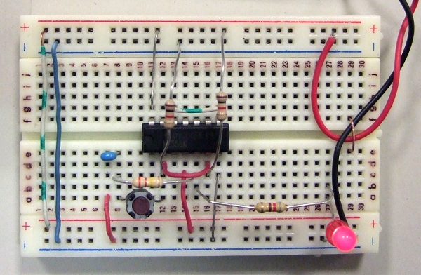 LED ist zunächst aus. Mit einem Tastendruck entsteht ein negativer