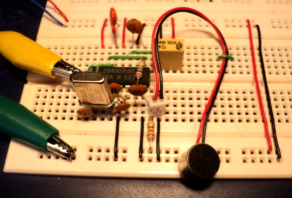 verwendete Mikrofon anzupassen. Über C5 (100 nF) wird die Eingangsspannung des Inverters