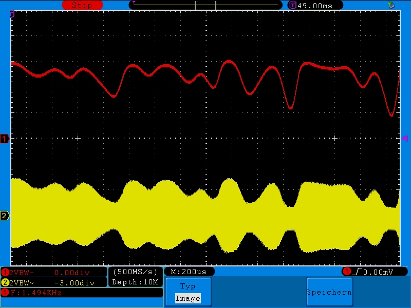 Amplitudenmodulation des Ausgangssignals (gelbe Kurve im unteren Bild) ist.