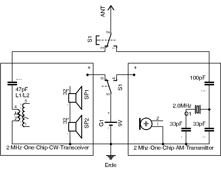 und diesem 2 MHz-One-Chip-AM-Transmitter einen 2 MHz-Two-Chip-AM-Transceiver zu