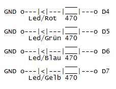 4x LED (Rot/Grün/Blau/gelb/weiß o.ä.)