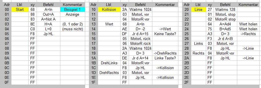 Programmausführung an der Adresse '00'. Außerdem lernt jeder