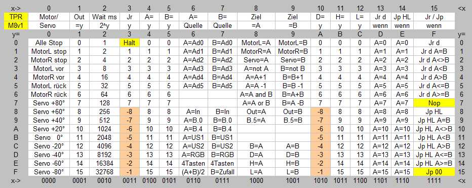 folgt die 'TPR-Arduino.ino'. Die Befehlstabelle ist mit der für M8