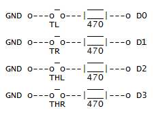 4 digitale Eingänge für Stoßstange vorn und hinten (D0-D3)