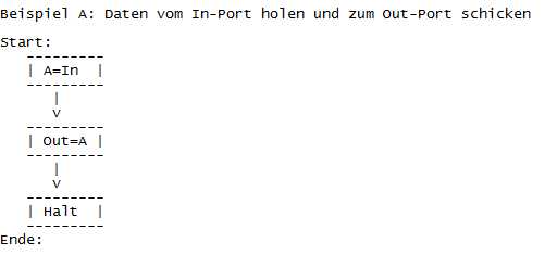 den Registern A/B. Die Ausgabe der Daten (oder Konstanten) erfolgt auf