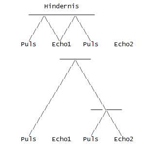 Gegenstand ermitteln. Nach einem Impuls (40kHz) wird die Zeit bis zum