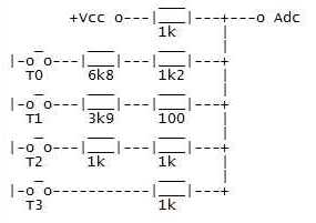Die Formel zur Berechnung ist: Taste = 8192 / Adc(3) - 8