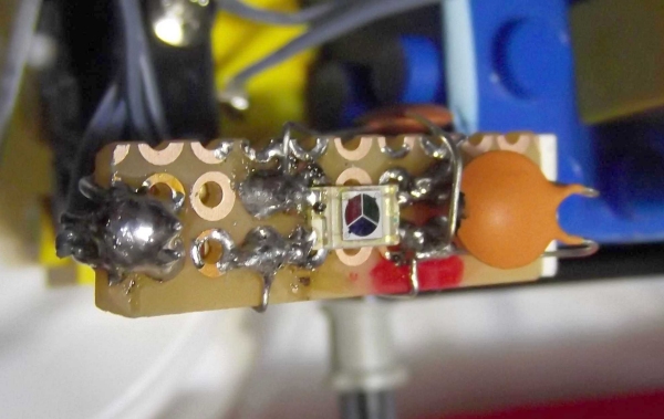 (Die Platine ist an einen 1x8-Stein geklebt)