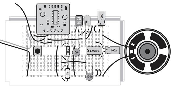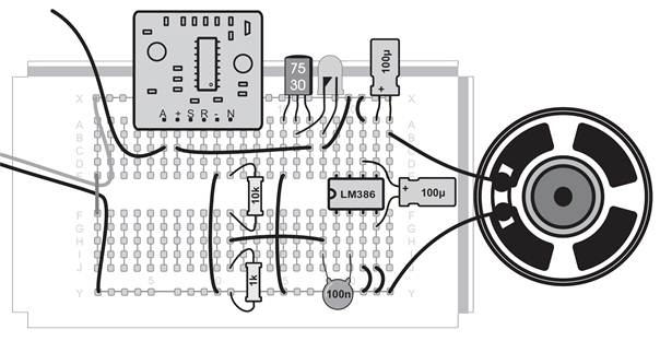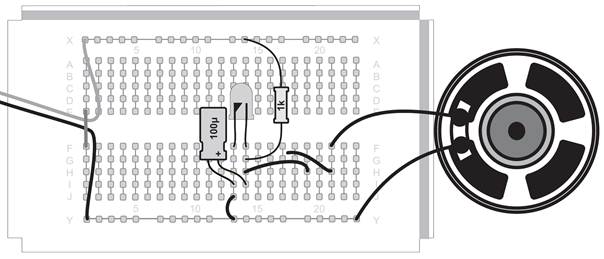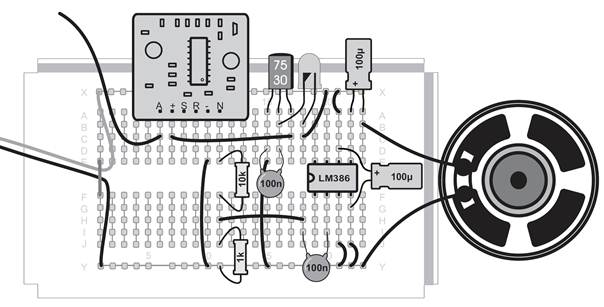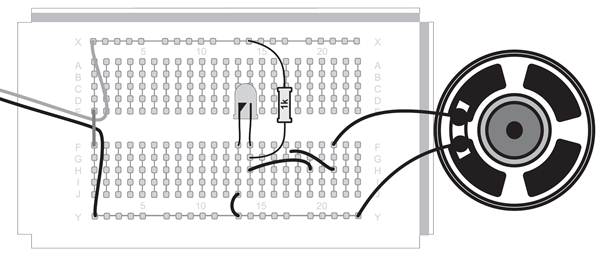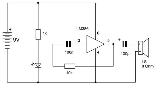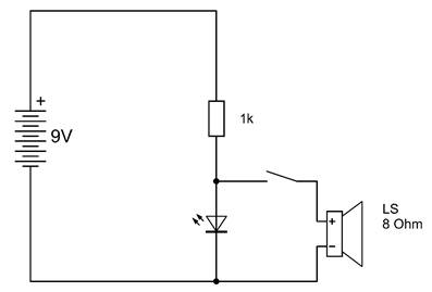entsteht ein Geräusch. Der Strom durch den Lautsprecher führt zu einer kleinen