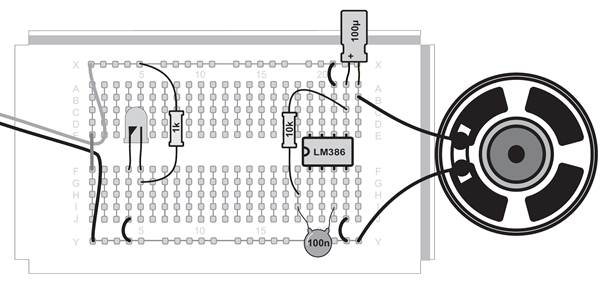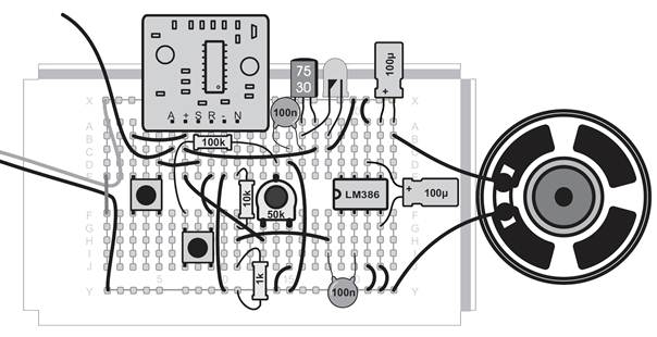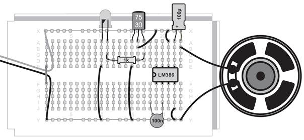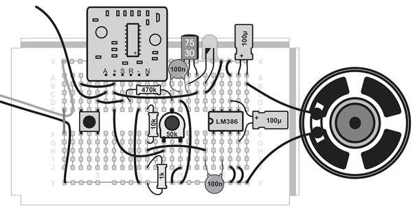 einfach neben der Steckplatine auf dem Tisch liegen. Das Radio kommt damit ohne