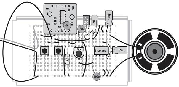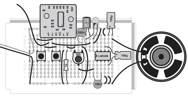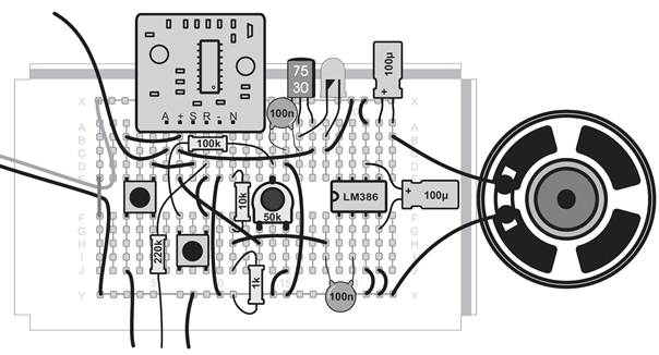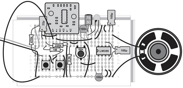 100 nF (104). Setzen Sie diesen Kondensator zur Veränderung des Klangs ein.