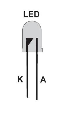 Der erste Versuch im Advent soll eine LED zum Leuchten bringen. Eine LED darf niemals direkt an eine Spannungsquelle gelegt werden, sondern man braucht immer auch einen Vorwiderstand. Ohne diesen Widerstand würde die LED durch zu viel Strom zerstört! Die LED muss in der korrekten Richtung eingebaut werden. Sie besitzt zwei unterschiedliche Anschlüsse. Der kurze Draht ist der Minuspol (Kathode K) der längere Draht ist der Pluspol (Anode A). Der breitere untere Rand ist an der Kathodenseite abgeflacht. Außerdem ist bei allen LEDs in diesem Kalender der größere Halter im Inneren der LED mit der Kathode verbunden.