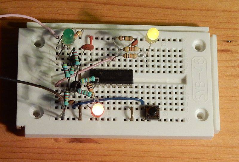 noch ein diskret aufgebautes Flipflop ergänzt. Es wird durch eine Taste