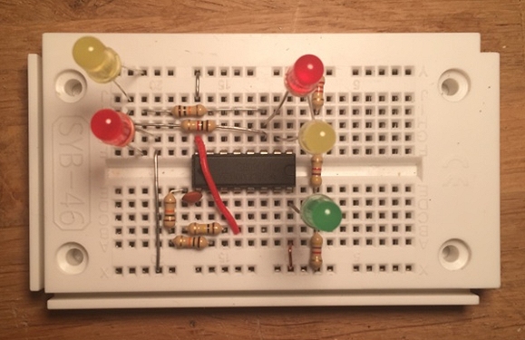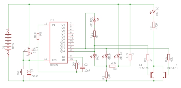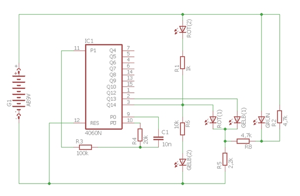 Verkehrsampel mithilfe des CMOS-Bausteins CD4060B simuliert. Andere