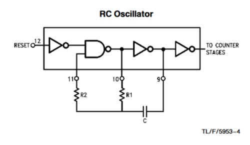 zeitbestimmende Komponenten C1 / R4 dienen in diesem Fall 2x 10 kOhm in