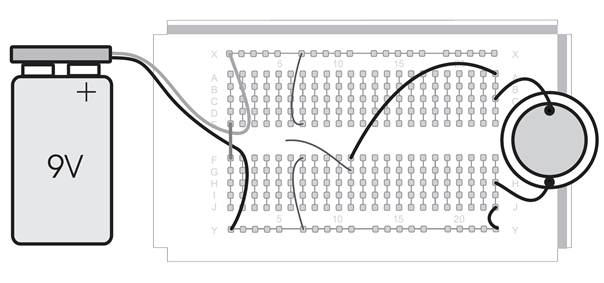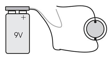 Aufgabe: Sie können durch wiederholtes Umpolen der Batterie Knack-Geräusche