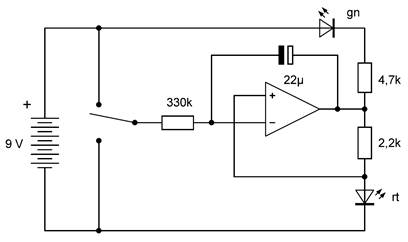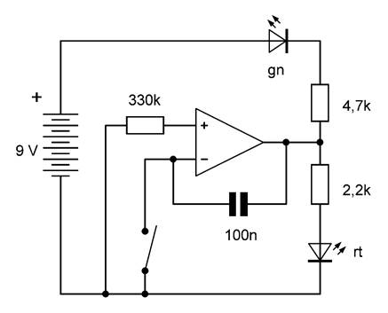 sieht man einen Wechselblinker mit der roten und der grünen LED, der als