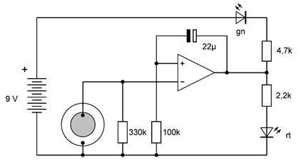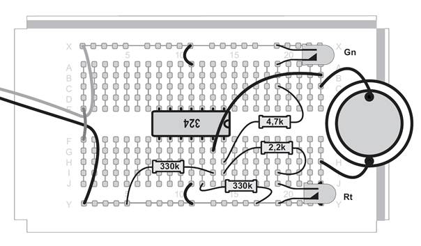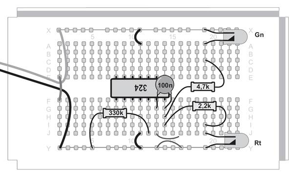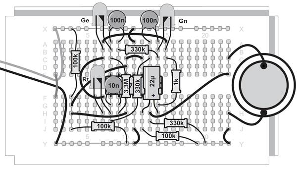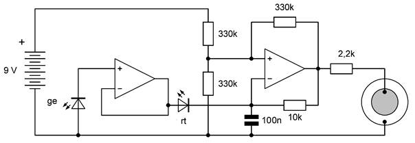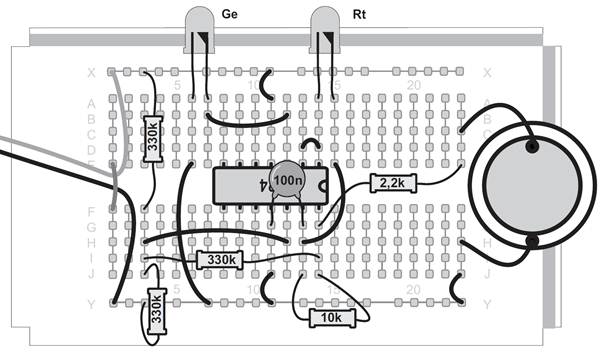 wenn die rote und die grüne LED gesperrt sind, entsteht der Ton.