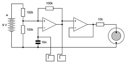 Pufferverstärker und der Elko an der Betriebsspannung.