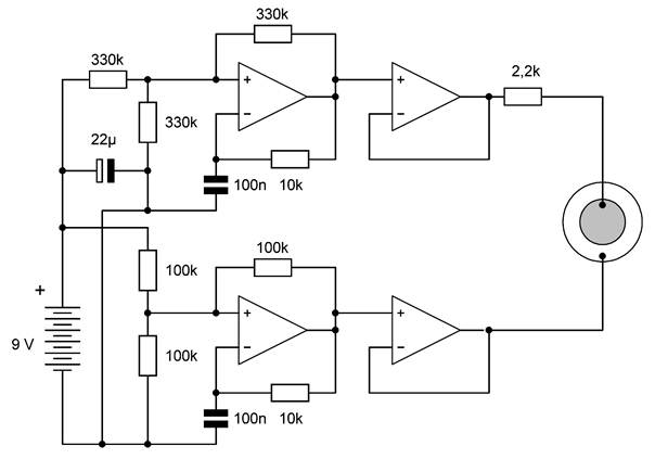 nF (104). Damit können zwei Oszillatoren mit gleicher Frequenz aufgebaut