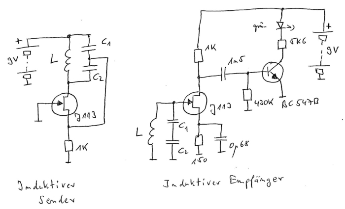 induktiven Sender und einem induktiven Empfänger. Der Oszillator