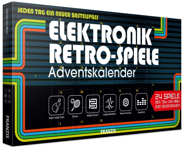 Dieser Elektronik-Kalender bietet Ihnen 24 spannende Experimente mit elektronischen Spielen. Jeden Tag finden Sie ein neues Bauteil, und jeden Tag bauen Sie Ihr Spiel um. Spiel und Spaß in der Adventszeit.