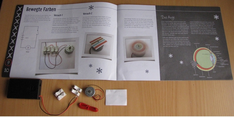 9. Bewegte Farben (2 Versuche, Informationskasten: Das Auge)