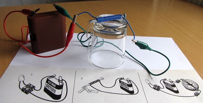 Als Spannungsquelle wird eine 4,5 Volt-Flachbatterie
