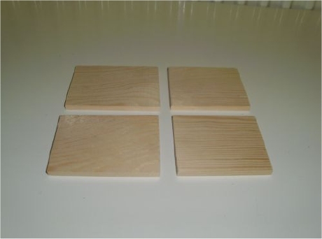 1. Aus der Rechteckleiste 2 Brettchen 80 x 58 mm und 2 Brettchen 70 x 58 mm aussägen.