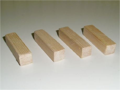 2. Aus dem Quadratstab 4 Stäbchen 10 x 10 x 40 sägen.