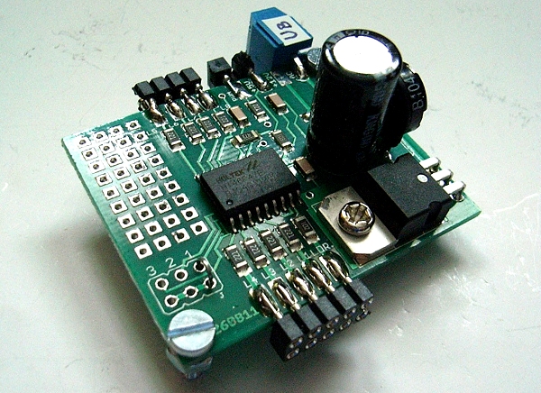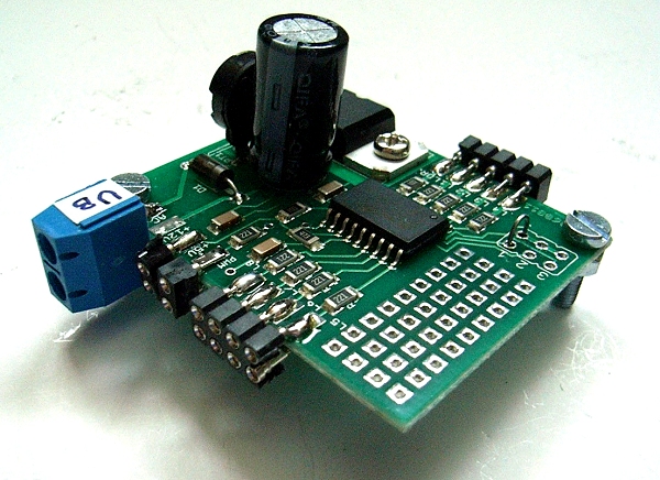 Die zweipolige Anschlussklemme im Bild ist für die Leitungen zur Spannungsversorgung der Platine vorgesehen.