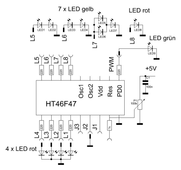 ist der Schaltplan zu der oben vorgestellten Lauflichtschaltung.