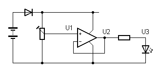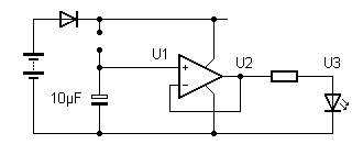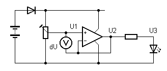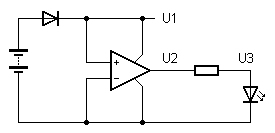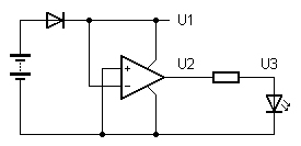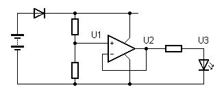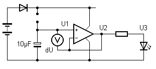 der leuchtenden LED wird wieder bei etwa 2 V liegen. Aber U2 ist schwer