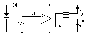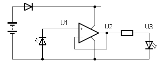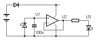 steigt die Spannung U1, damit auch U2, und damit geht der LED ein Licht
