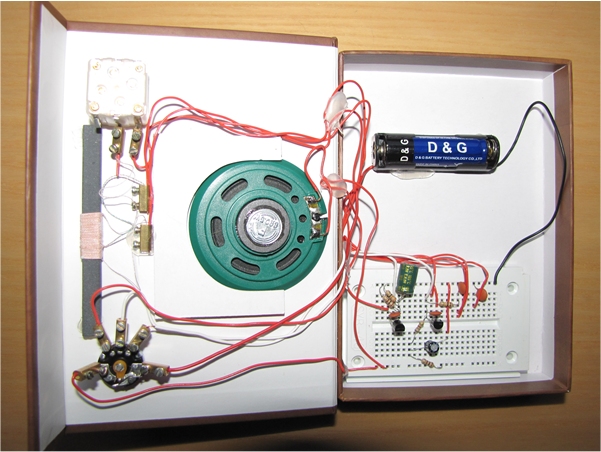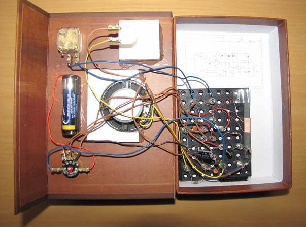 mit Lochplatte und Klemmfedern der Fa. ´Winkler Schulbedarf´ im großen Gehäuse