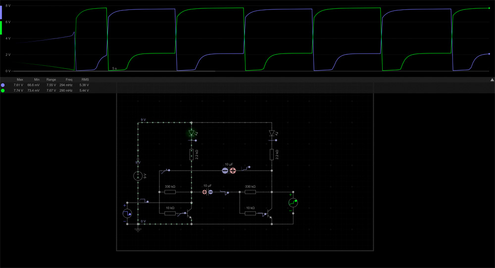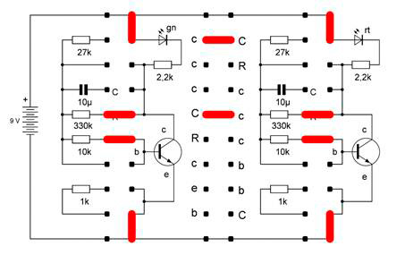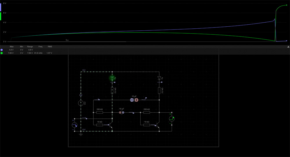 Gegenkopplung in Form eines Widerstands mit 330 kΩ zwischen Basis und Kollektor