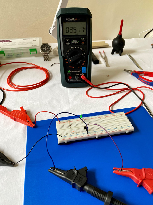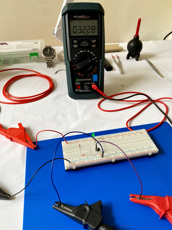 Nun möchten wir ermitteln, ob mehr Kollektorstrom durch die LED