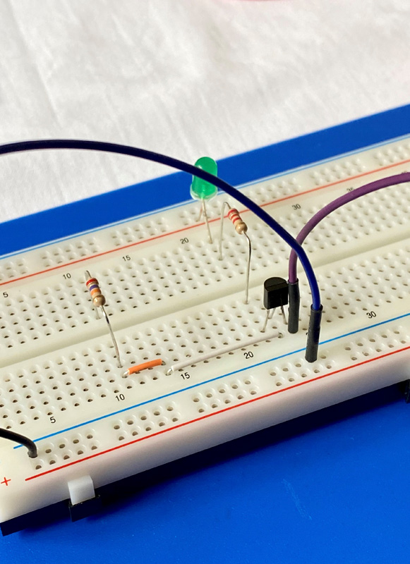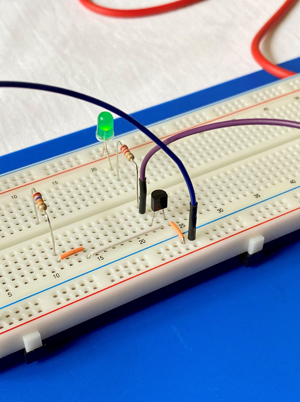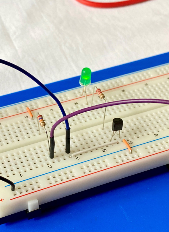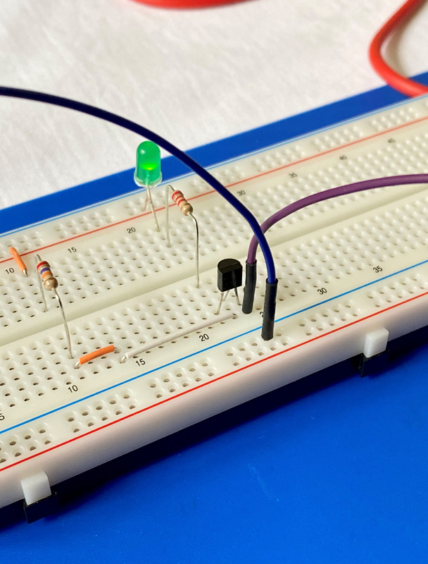Steckbrett den Transistor mit einem Steckkabel als Schalter. Dabei gehen wir