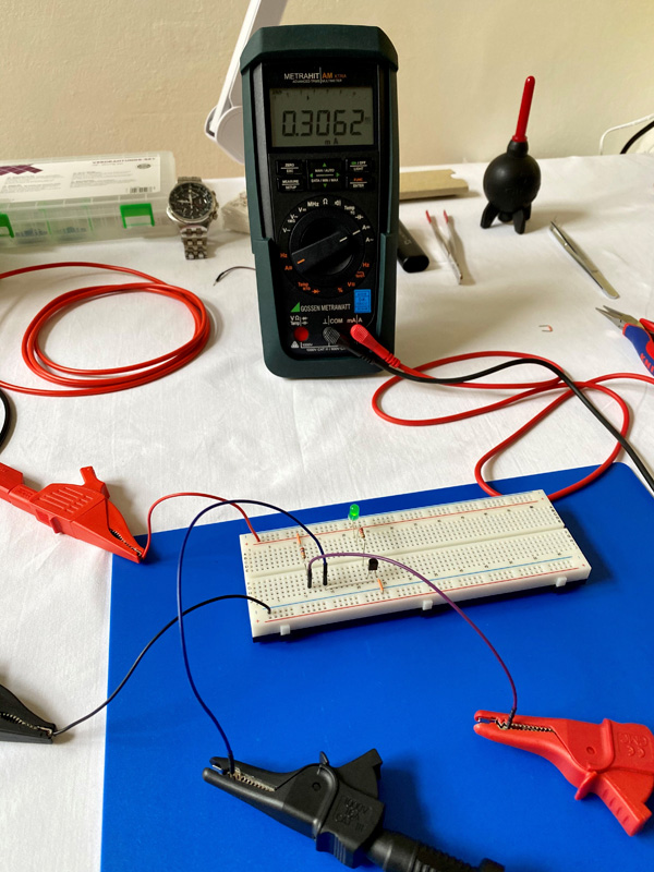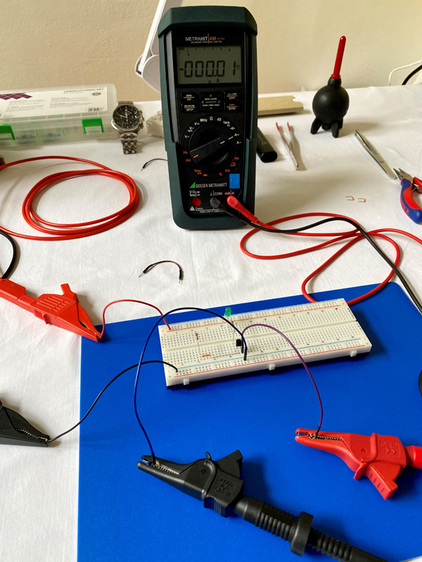 Wir nehmen folgende Messungen mit dem Multimeter (Amperemeter)