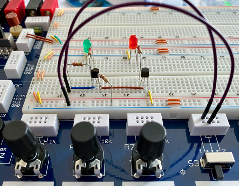 Die Schaltung wird auf dem Experimentier-Steckboard